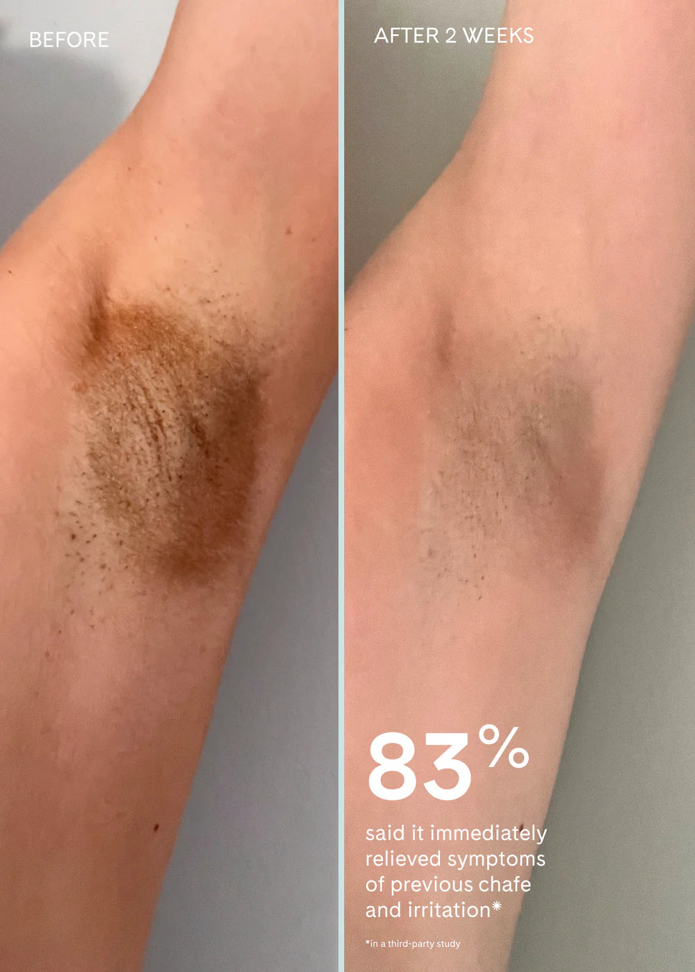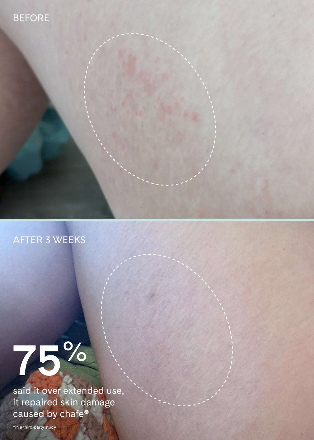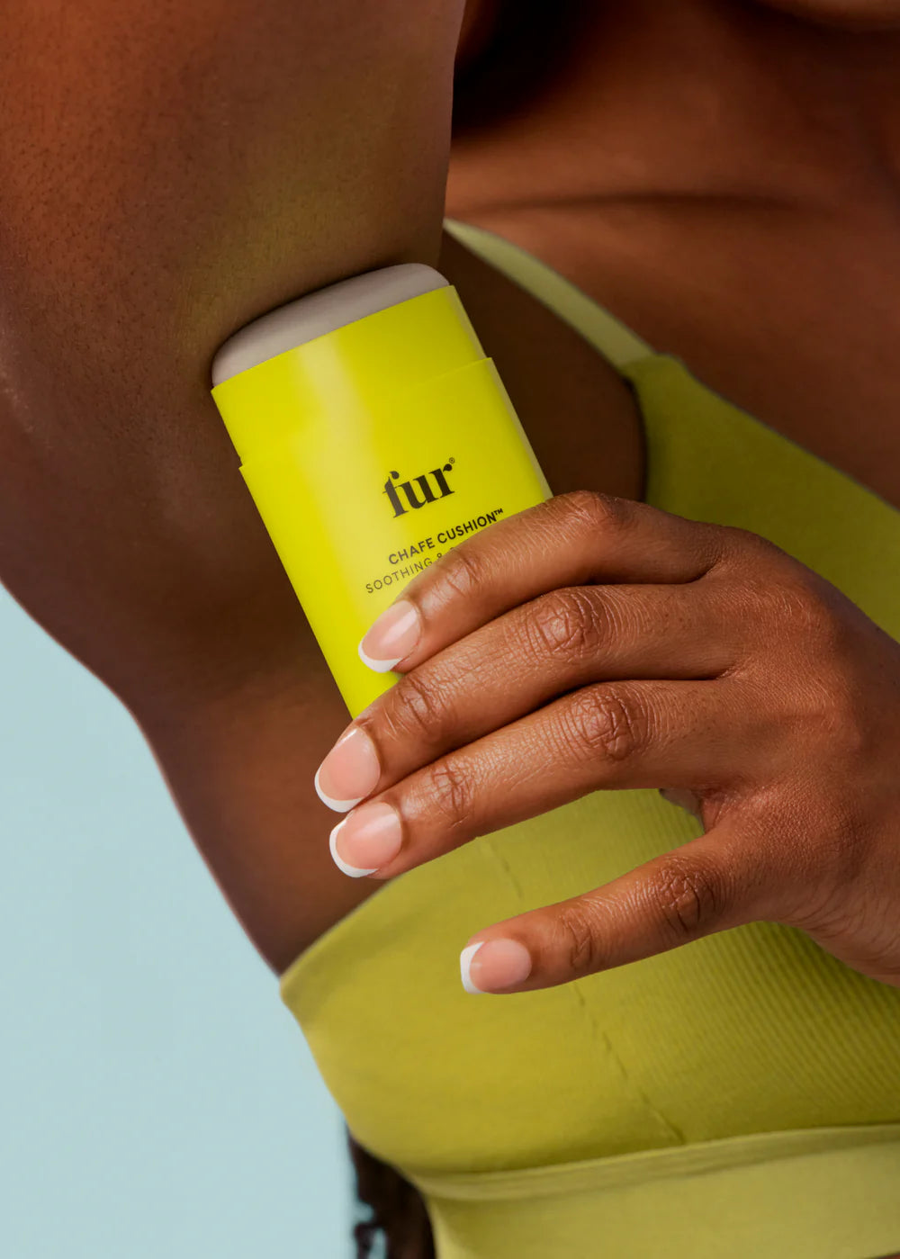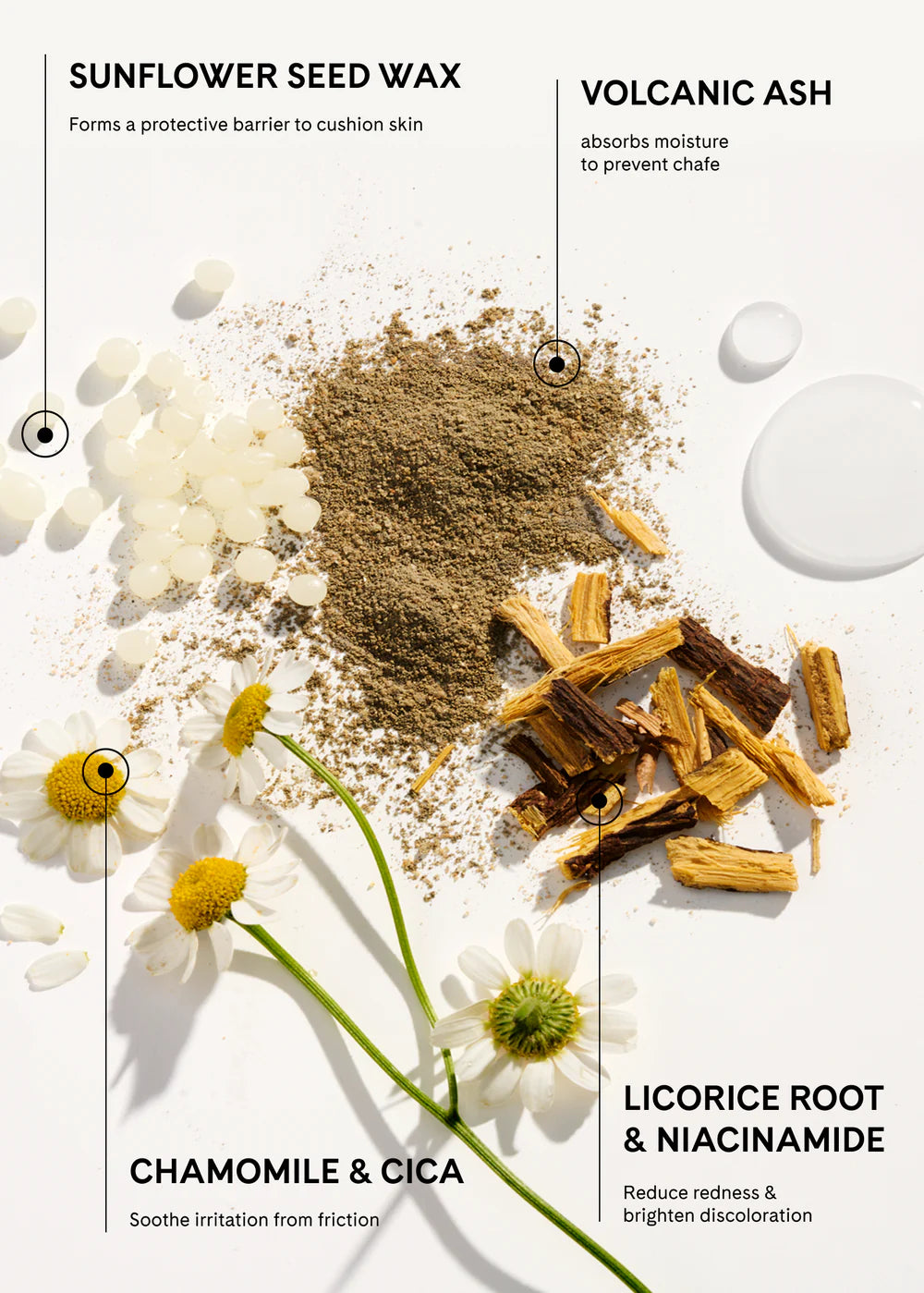 Move freely, without chafe. Chafe Cushion is an allover anti-chafe stick that prevents, soothes, and repairs signs of irritation, leaving your skin soft and friction-free. With a dry-touch finish, it leaves your skin feeling soft and protected—no residue, just comfort that lasts.